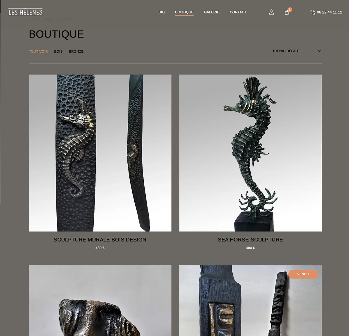 e-Link | Multimédia a conçu la boutique en ligne Les Hélènes, pour découvrir et acheter facilement leurs sculptures uniques.