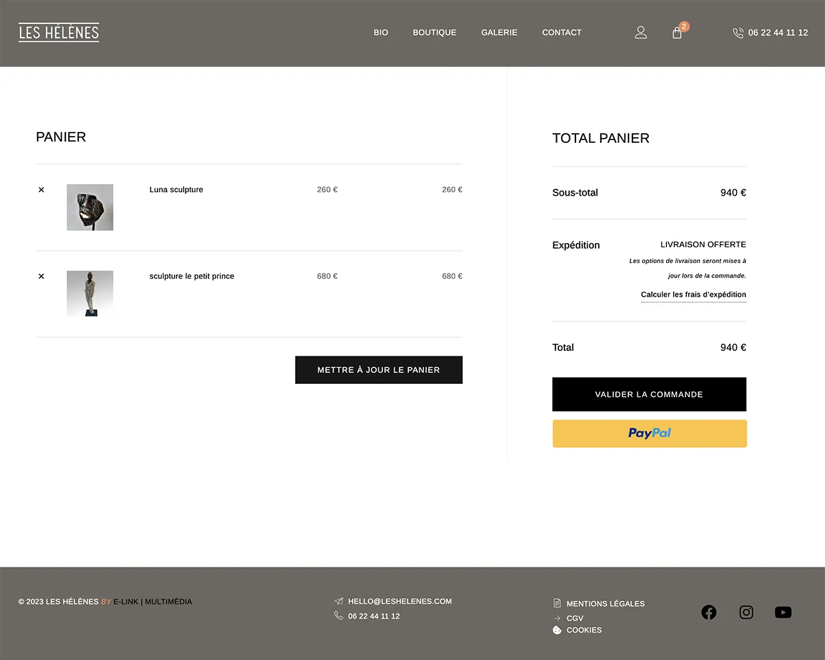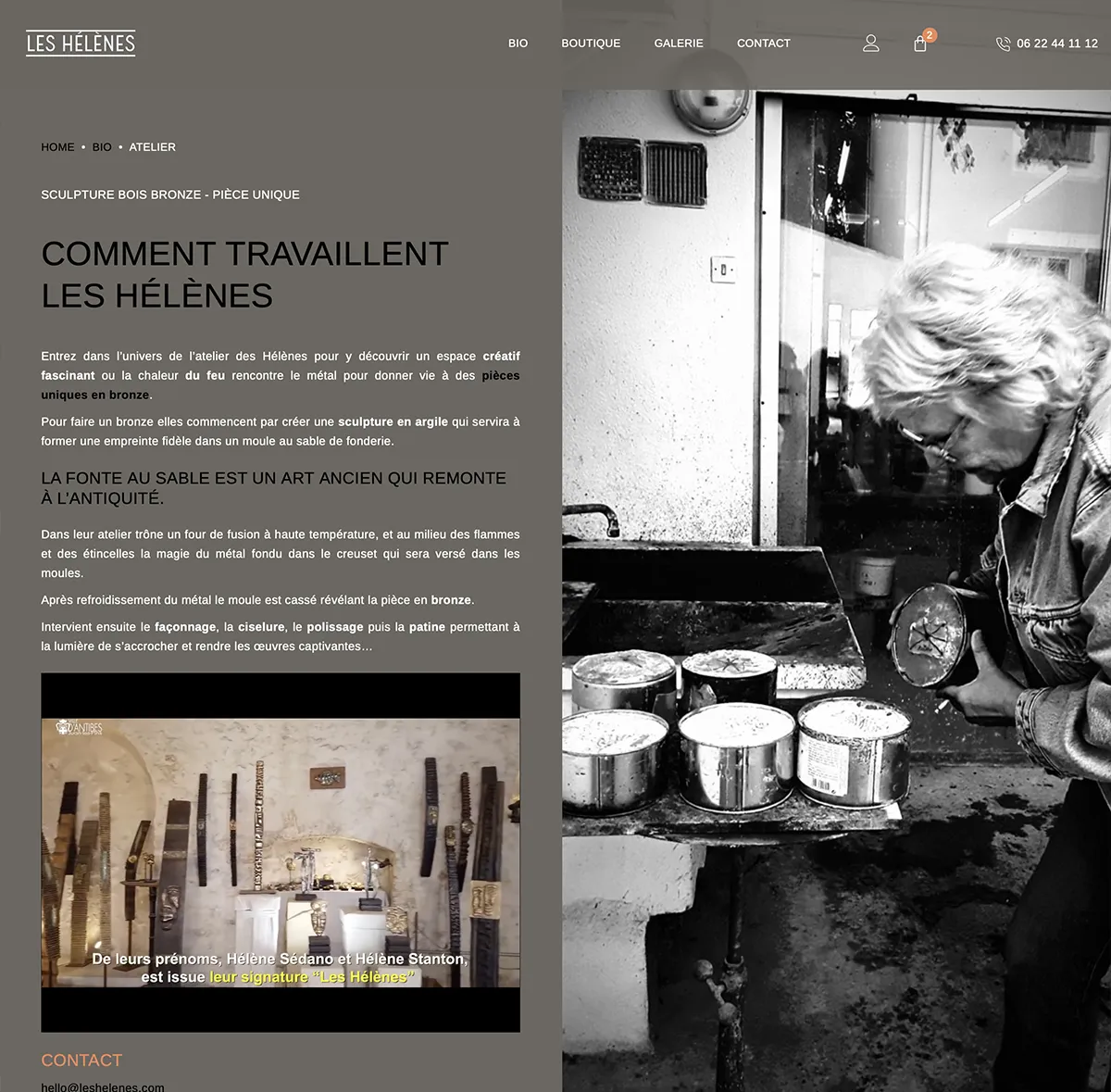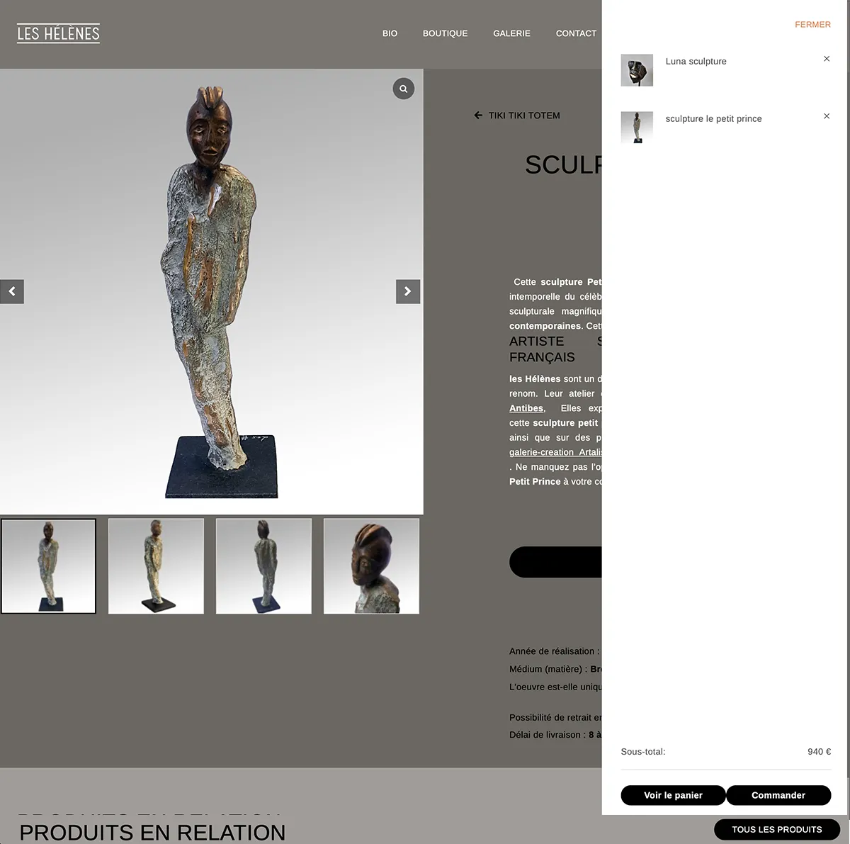 Une boutique en ligne immersive et facile à naviguer, valorisant pleinement les sculptures des Hélènes, avec un design qui marie esthétisme et fonctionnalité, et offrant une expérience d’achat fluide et agréable.